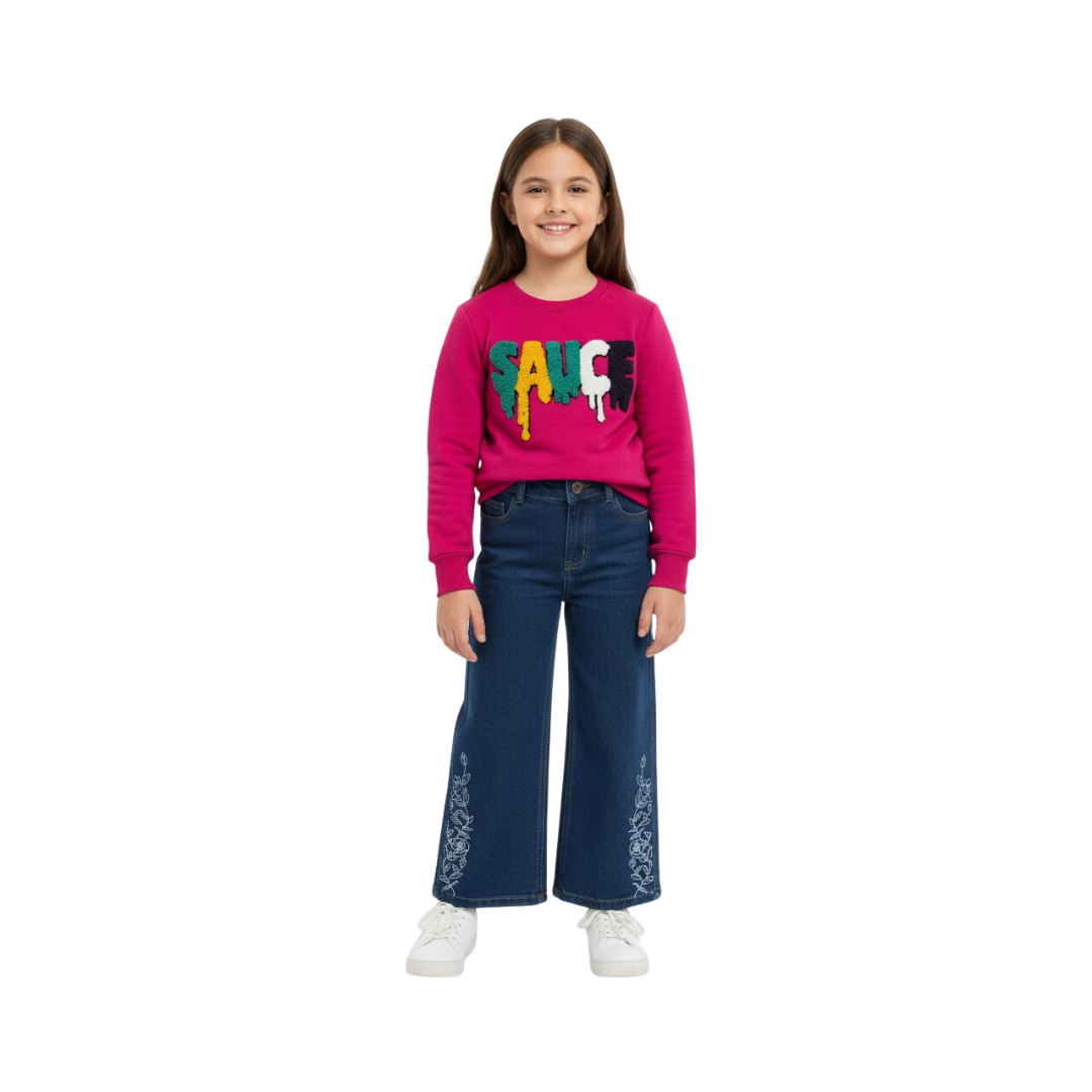 “This girls’ sweatshirt is designed with soft, high-quality fabric that feels gentle and warm for everyday winter comfort. Its stylish fit, cozy texture, and trendy look make it perfect for school, casual outings, or relaxed home wear—combining comfort, warmth, and fashion in one perfect piece.”